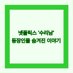 이 외에도 '수리남'에는 다양한 인물들이 등장합니다. 대표적으로 다음과 같은 인물들이 있습니다: